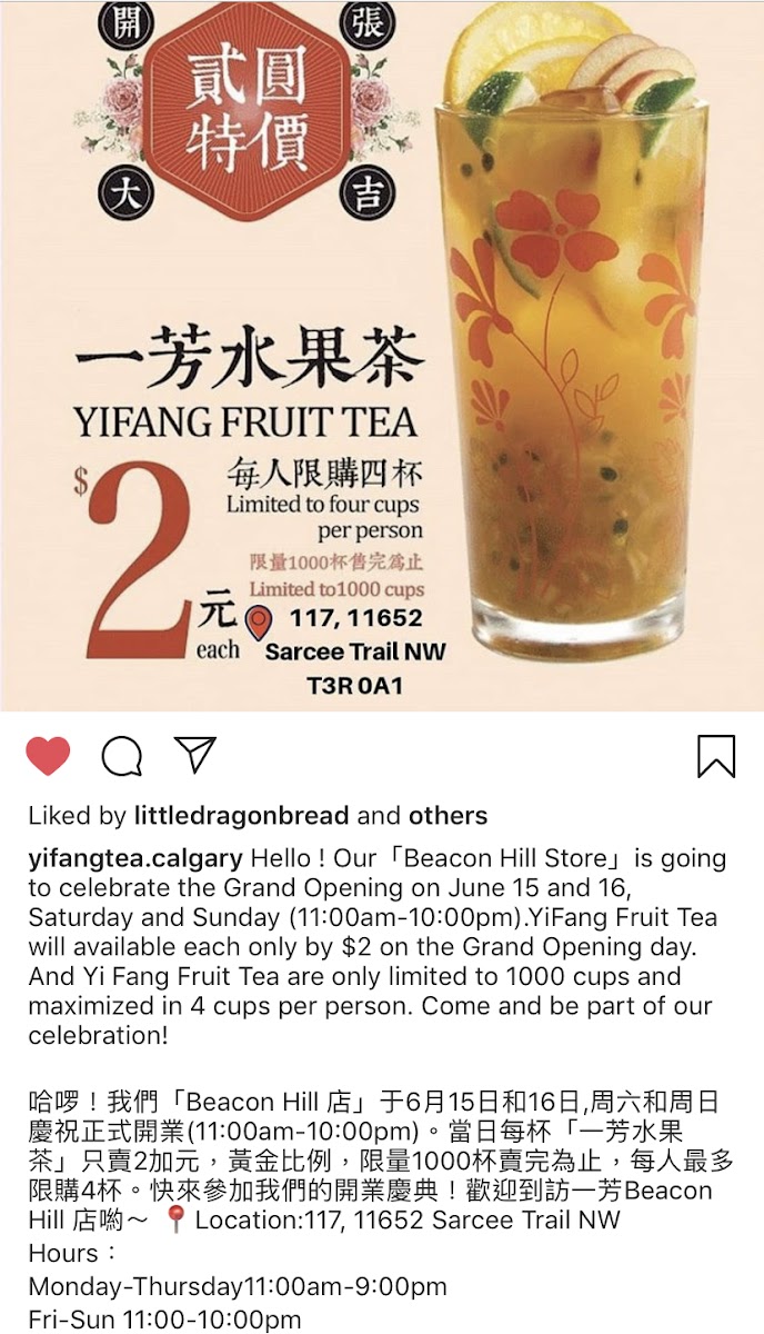Experience a delightful blend of culture and flavor at YiFang Taiwan Fruit Tea, located at 11652 Sarcee Trail NW, Calgary, AB. This charming bubble tea store is a refreshing escape for tea enthusiasts and adventurers alike. Specializing in authentic Taiwanese fruit teas, YiFang offers a unique take on traditional bubble tea, ensuring every sip is an explosion of freshness and flavor.